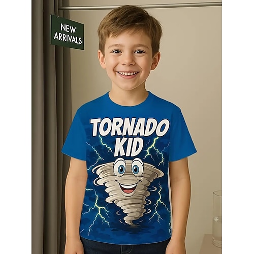 Maglietta da ragazzo con grafica 3D e tornado, manica corta, stampa 3D, estiva, primaverile, sportiva, moda, streetwear, bambini 4-12 anni, girocollo, casual, per attività all'aperto, vestibilità