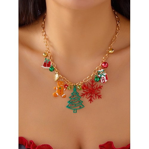 Collana con ciondolo natalizio da donna, Babbo Natale festoso, fiocchi di neve, renne e albero di Natale, perfetto regalo di gioielli per le feste