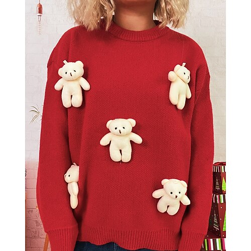 Per donna Felpa Maglione Pom Pom regalo di Natale Carino Animale A Coste Girocollo Lavorato a maglia Manica Lunga Top Regolari Maglia Natale Ferie Uscire Rosso Autunno Inverno