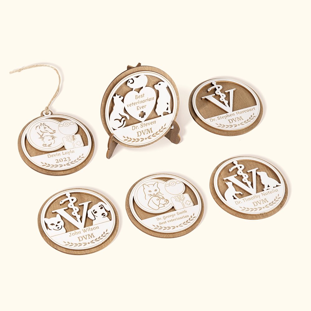 Personalizado Veterinario Caduceo 3D Talla Placa Adorno de Madera con Texto Regalo de Cumpleaños para Estudiante de Veterinaria Médico de Animales