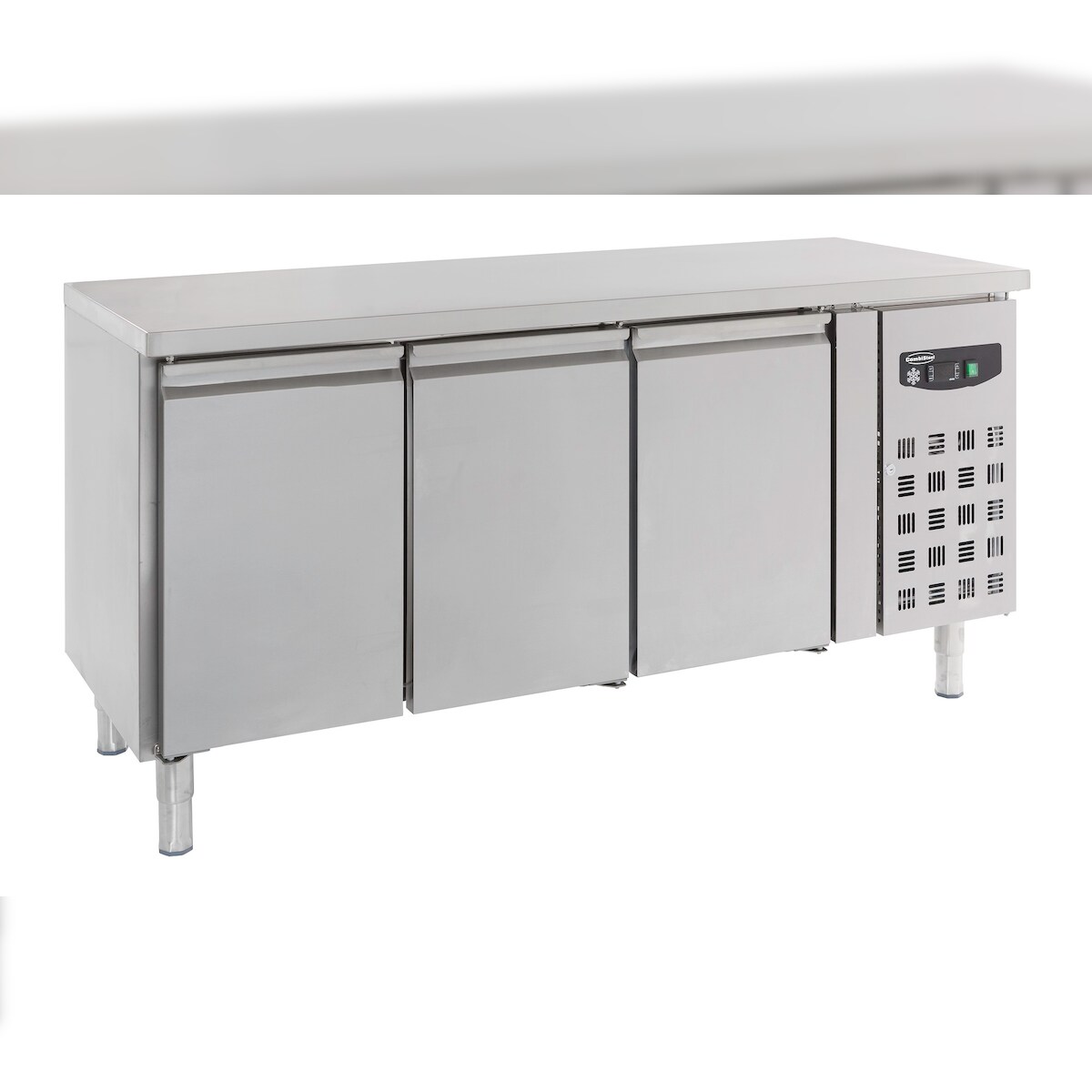 Kühltisch ALBON | 3x Tür | 386 Liter, HxBxT 86x179,8x60cm | +2/+8°C | Edelstahl | + CHEFGASTRO Geschirrtuch
