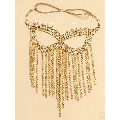 Copricapo con maschera e frange in strass di cristallo da donna - copricapo con catena per il viso scintillante per feste in stile Gatsby, spettacoli teatrali ed eventi serali
