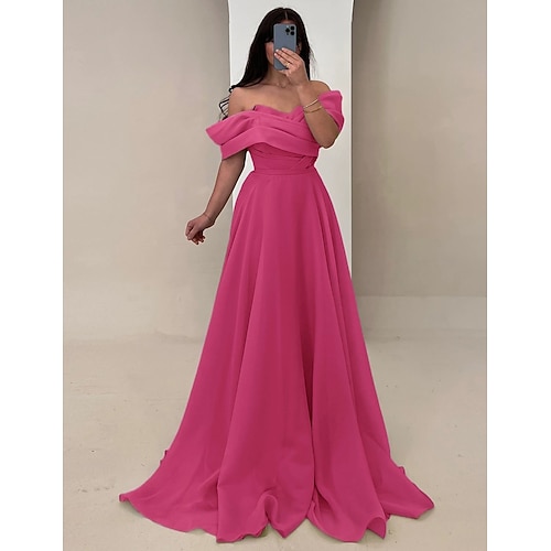 Linea ad A Lunghezza al pavimento Abito da Sera Da principessa Abito formale Elegante Manica Corta Senza Spalle Formale Tasca Raso con Arricciato