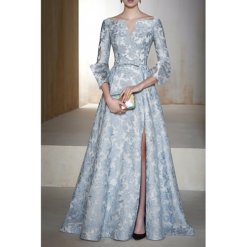 Linea ad A Lunghezza al pavimento Abito da Sera Da principessa Abito formale Elegante Floreale Spacco Alto Manica Lunga Scollo a V Matrimonio Formale Tasca Jacquard Shiena scoperta con Stampa