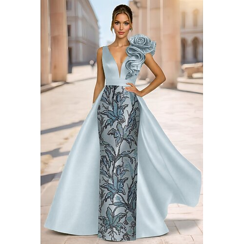 Linea ad A Tubino Colonna Lunghezza al pavimento Abito da Sera Abito da ballo con sopragonna Elegante Scintillante Floreale Senza Maniche Scollo a V Festa serale Matrimonio Raso con Stampa floreale