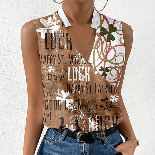 Canotta da donna per il giorno di San Patrizio Shamrock Lettera Moda Senza maniche A V Tops normali St. Patrick's Day Stampa casual Rossa Blu Verde Khaki Grigia Estate