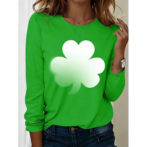 Maglietta da donna St. Patrick's Day grafica moda alla moda classica a maniche lunghe colletto tondo top regolari per stampa quotidiana fine settimana grigia bianca bianca verde estate primavera