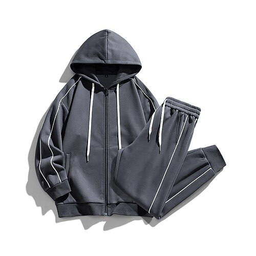 Per uomo Tuta da Ginnastica Pantaloni da Tuta Felpa con cappuccio e zip Coulisse Tasca Tinta unita Completo Abbigliamento Primavera Nero Bianco Escursionismo Allenamento Atletico Protezione Solare