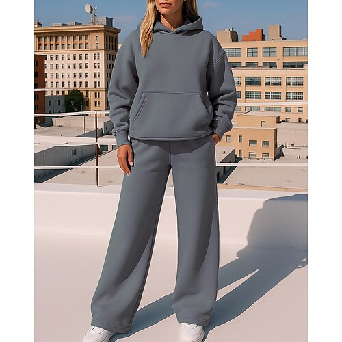 Per donna Tuta da Ginnastica Pantaloni da Tuta Abbigliamento sportivo Con cappuccio Tinta unita Completo Abbigliamento Autunno Inverno Nero Bianco All'aperto Viaggio Sportivo Di tendenza Manica