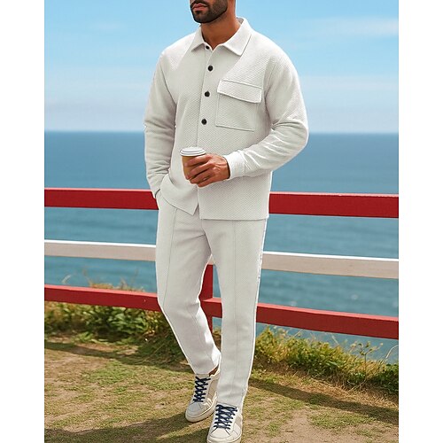 Per uomo Abiti da giacca Abiti da salotto Bottoni con tasca Tinta unita Completo Abbigliamento Autunno Inverno Nero Bianco Escursionismo Lavoro Viaggio Manica Lunga Sport Abbigliamento sportivo
