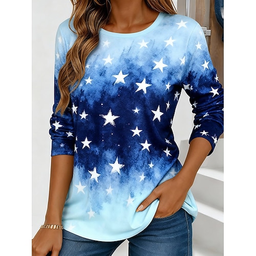 Capodanno Per donna Maglietta Grafico Stella Moda Casual Manica Lunga Girocollo Top Regolari Quotidiano Weekend Stampato Blu Estate Primavera Autunno