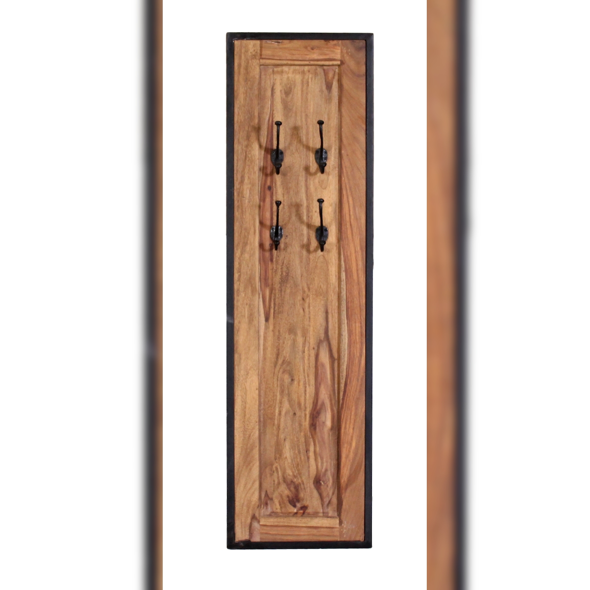 SIT Möbel Wandgarderobe | 4 Doppel-Haken | Akazie natur | Altmetall antikschwarz | B 35 x T 8 x H 110 cm | 09263-01 | Serie PANAMA