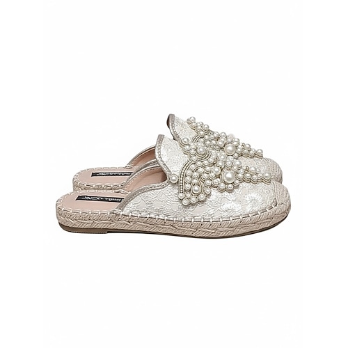 scarpe da sposa basse da donna con decorazioni in perle color avorio, eleganti ballerine slip-on da sposa per matrimoni in spiaggia