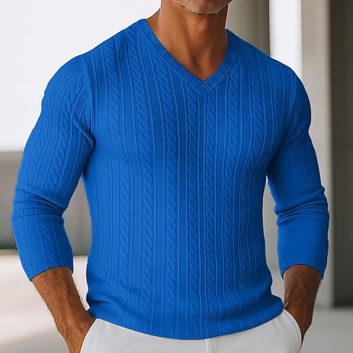 Per uomo T-shirt da uomo in maglia a costine con scollo a V Maglietta a Maglia a Coste Maglietta Manica Lunga Scollo a V Estate Primavera Autunno Semplice Jacquard Moderno Casual Confortevole Bottoni