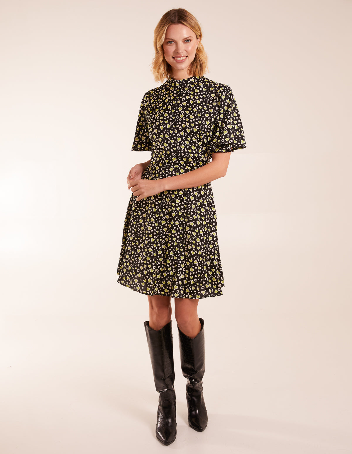 Blue Vanilla Womens High Neck Flutter Sleeve Dress - Black - Size 14 UK | Blue Vanilla Sale | Discount Designer Brands