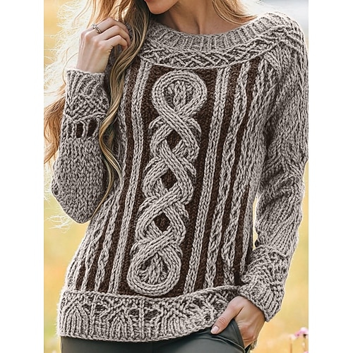 Per donna Felpa Vintage Stile Etnico Casual Colore Puro Treccia Girocollo Lavorato a maglia Manica Lunga Top Regolari Maglia All'aperto Quotidiano Weekend Blu Marrone Autunno Inverno