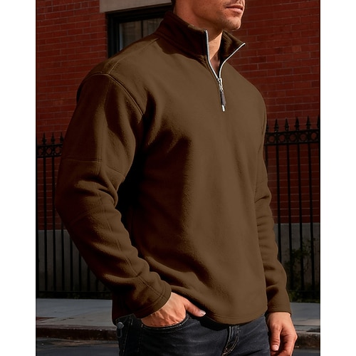 Per uomo Polo Polo con zip a un quarto Vacanza Streetwear Zip a un quarto Manica Lunga Moda Essenziale Tinta unica Cerniera Pile Autunno Inverno Vestibilità regolare blu navy Nero Kaki Grigio scuro