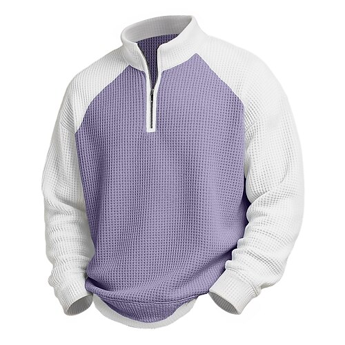 Per uomo Magliette Polo a Nido d'Ape Polo con zip Sport all'Aperto Casuale Colletto Mao Con cerniera Manica Lunga Moda Moderno Tinta unica Testurizzato Lavorato a maglia Primavera Autunno Tutte le
