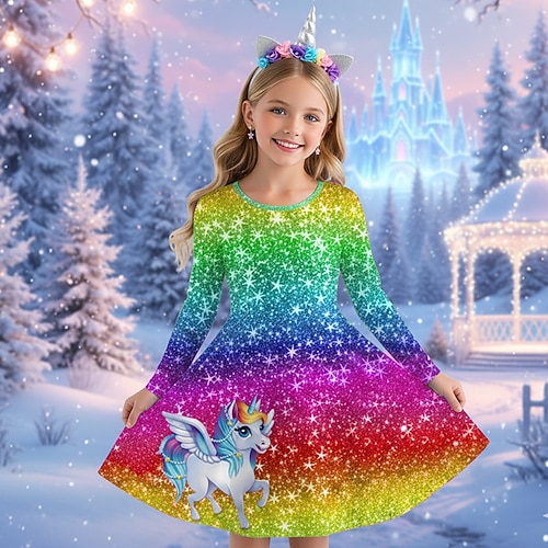 ragazze' 3D Grafico Anime Abito Manica Lunga Stampa 3D Primavera Autunno Performance Vacanza Feste Casual Principessa Bello Bambini 4-12 Anni Vestito Casual Abito a trapezio Lunghezza al ginocchio