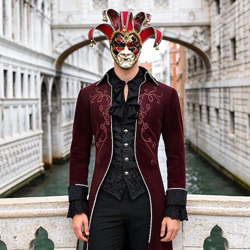 Set Abiti Medievale Rinascimento Maschera Camicia Abbigliamento esterno Lunghe Principe Nobile Costume Per uomo Costume di Carnevale Carnevale martedì grasso Carnevale Carnevale di Venezia Adulti