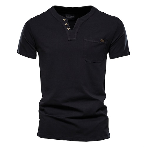 Per uomo Maglietta Manica Corta Scollo a V Estate Tutte le stagioni Tinta unica Quotidiano Casual Quotidiano Casual Tasca Scollo a V Vacanza Casual Casuale Blu chiaro Nero Bianco Maglietta Top per