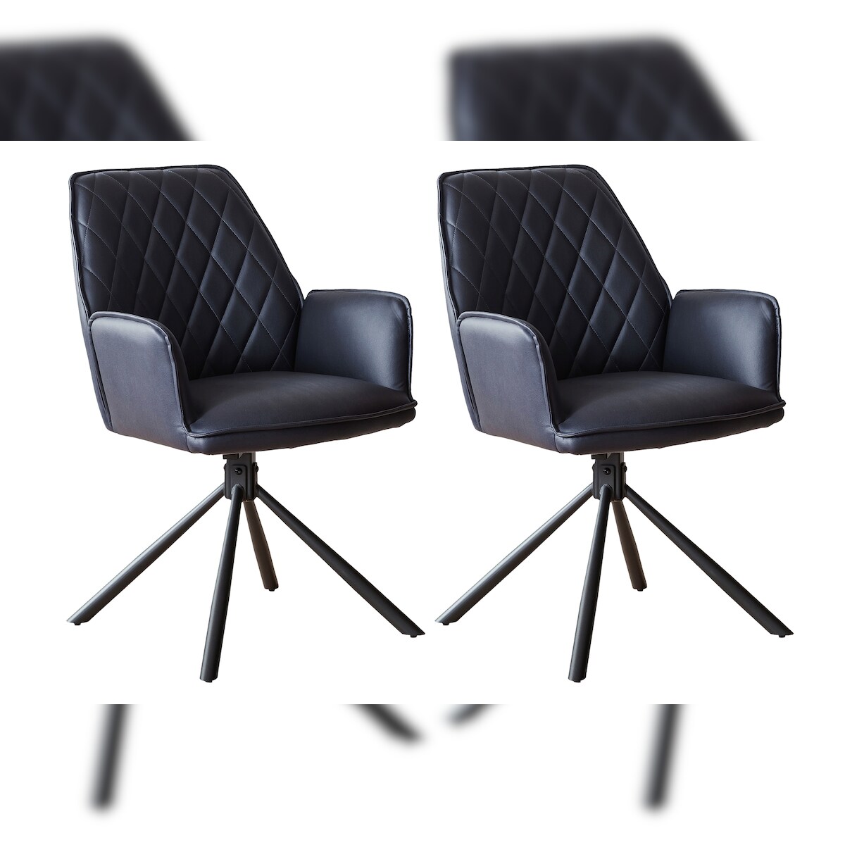 SalesFever Armlehnstuhl 2er-Set | 360 Grad Drehfunktion | Bezug Microfaser in Kunstlederoptik | Gestell Metall | B59xT63xH89 cm | dunkelblau–schwarz