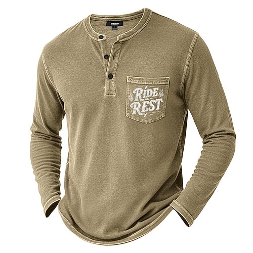 Per uomo Maglia Henley Maglietta Manica Lunga Vintage Retrò Vintage Casual Tasca Grafico Henley Casuale Primavera Autunno Tutte le stagioni Blu Viola Marrone Maglietta Henley