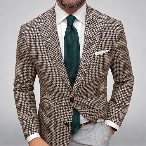 Per uomo Giacca blazer Giacca Sportiva Collare di chiusura All'aperto Casual Pied-de-poule A quadri Nero Giallo Verde chiaro Vestibilità su misura Monopetto Due Bottoni