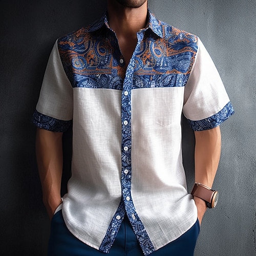 Per uomo Floreale Tribale Etnico Camicia Camicia con Bottoni Manica Corta Moda Designer Casual All'aperto Casuale Estate Primavera Collo ripiegato Stampato A E I M Q