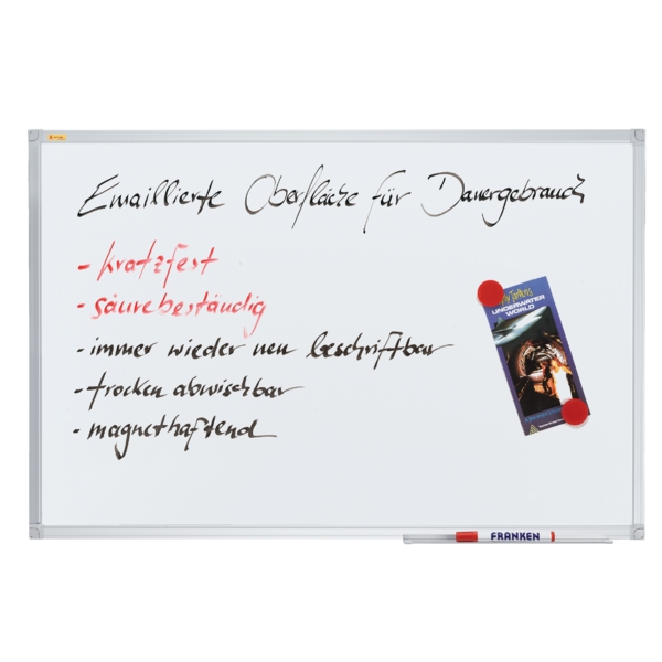 FRANKEN Whiteboard 200 x 100 cm, Schreibtafel X-tra!Line, emailliert, magnetisch, beschreibbar, trocken abwischbar, mit Aluminiumrahmen, Magnettafel