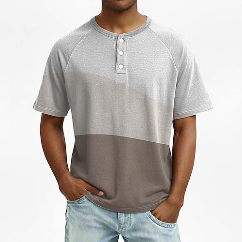Per uomo Geometrico Blocco di colori Maglia Henley Maglietta Manica Corta Moda Designer Casual Quotidiano All'aperto Primavera Primavera Autunno Tutte le stagioni Marrone Verde Viola Grigio Henley