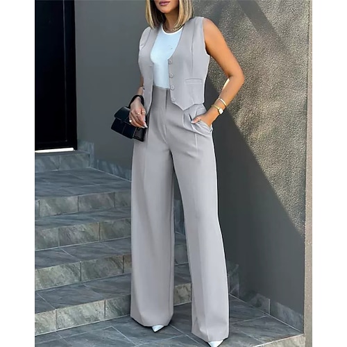 Per donna Attivo Moda Set di Pantaloni Blazer Abiti Senza Maniche Scollo a V Tinta unica Patchwork Vacanza Casual Quotidiano Nero Bianco Blu Estate Vestibilità regolare