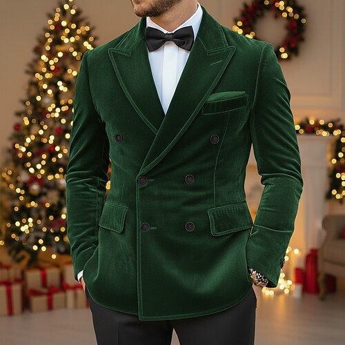 giacca blazer in velluto da uomo con chiusura a colletto, per feste di Natale, casual, tinta unita, rosso, blu, viola, vestibilità su misura, doppiopetto, sei bottoni
