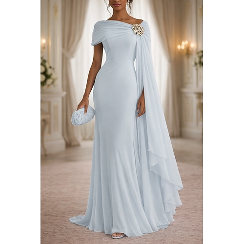 Linea ad A Lunghezza al pavimento Abito da Sera Da principessa Abito formale Elegante Manica Corta Monospalla Matrimonio Formale Raso Elasticizzato con Pieghe