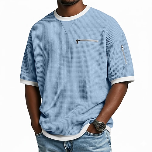 Per uomo Maglietta con bottoni Maglietta Maglia Henley Camicia a Maniche Corte Manica Corta Scollo a V Henley Primavera Estate Blocco di colori Colore Solido / Tinta Unita Moda Designer Patchwork