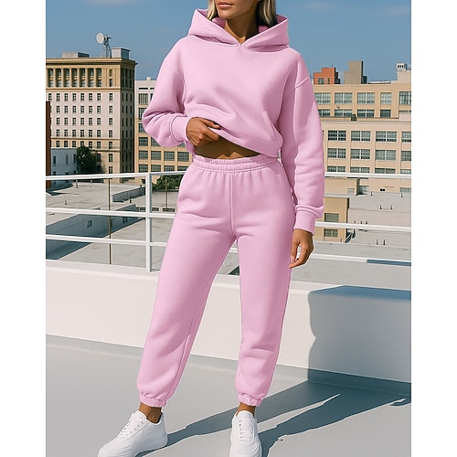 Per donna Tuta da 2 pezzi Felpa con cappuccio Lounge Set di tute da ginnastica Tinta unita Completo Abbigliamento Autunno Nero Bianco Allenamento All'aperto Viaggio Vita Alta Leggero Di tendenza