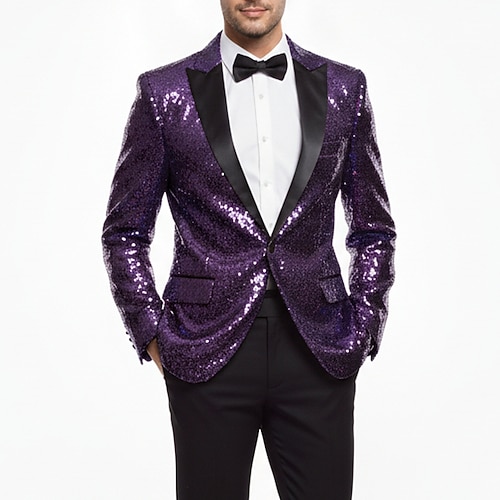 Per uomo Giacca blazer Collare di chiusura Festa Tinta unita Blazer Nero Argento Champagne Vestibilità su misura Monopetto Un Bottone