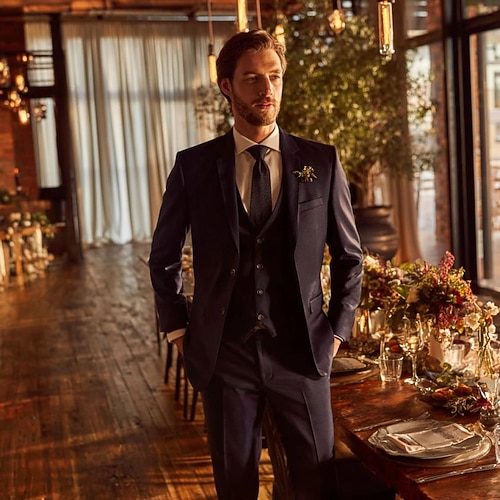 Uomo Matrimonio Abiti da sposa Bavero classico Borgogna Blu marino Formale Tinta unita Vestibilità standard 3 pezzi