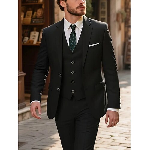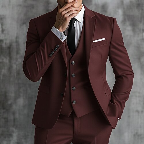 Uomo Matrimonio Casuale Abiti da lavoro Bavero classico Nero Borgogna Quotidiano Casual Tinta unita Vestibilità aderente 3 pezzi Monopetto Due Bottoni