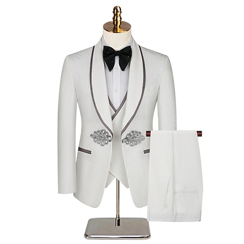 Uomo Balli di fine anno matrimonio invernale Abiti da festa Bavero sciallato Nero Bianco Moda Quotidiano Tinta unita Vestibilità su misura 3 pezzi Monopetto a un bottone