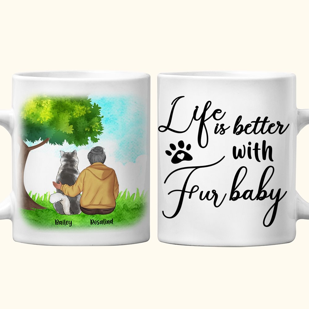 Taza de Cerámica Personalizada "Life Is Better with Fur Babies" Blanco y Color Interior con Nombre 11/15 oz Regalo para Amantes de los Perros