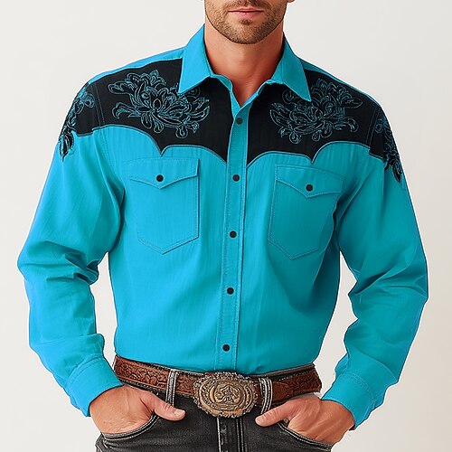 Per uomo Stampa Floreale Etnico Fiori Camicia Camicia Western Camicia da cowboy Manica Lunga Vintage Retrò All'aperto Casuale Abbigliamento da lavoro Primavera Autunno Collo ripiegato Due tasche