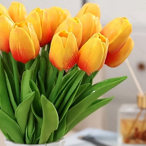 Bouquet di tulipani artificiali realistici da 22 pezzi - tulipani finti rosa e bianchi con steli verdi, fiori in resina/plastica per decorazioni per matrimoni, casa e ufficio - centrotavola realistico
