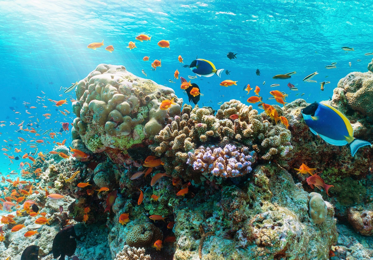 Papermoon Fototapete "UNTERWASSER-WELT-FISCHE KORALLE SEE MEER TIERE OZEAN" bunt B/L: 2,5mm x 1,86mm, Bahnen: 5 Stk. St.