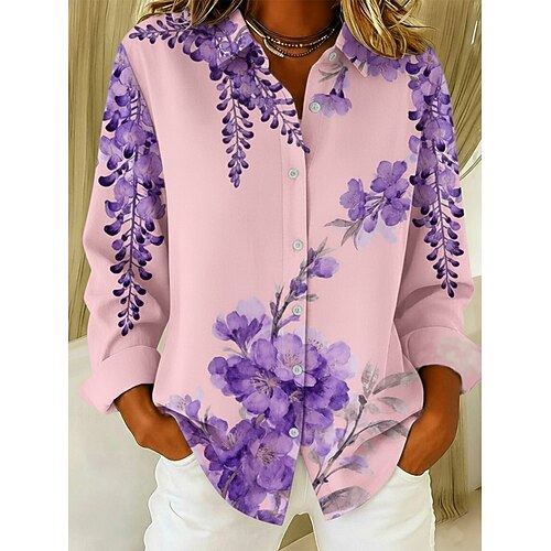 Per donna Camicia Floreale Elegante Casual Manica Lunga Colletto a Camicia Top Regolari Quotidiano Bottoni Stampato Bianco Rosa Primavera Autunno Inverno
