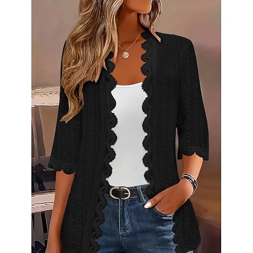 Per donna Giacca Casual Traspirante Confortevole Oversize Casual Semplice Vacanza Streetwear Casuale Abbigliamento quotidiano Aperto davanti Lungo Senza colletto Vestibilità regolare Manica 3/4