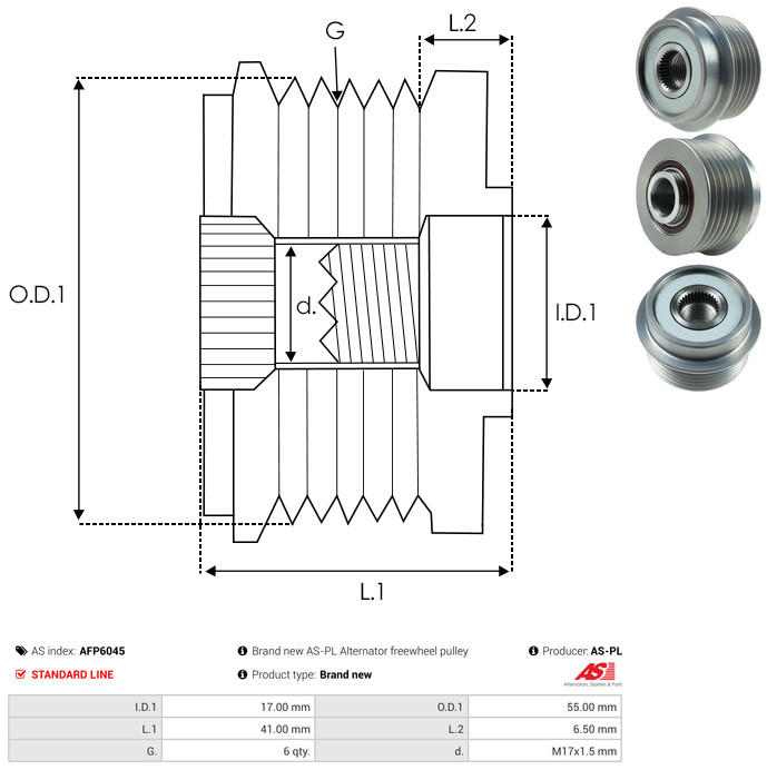 AS-PL Generatorfreilauf AFP2002 für OPEL 97186700 6204889 97355778