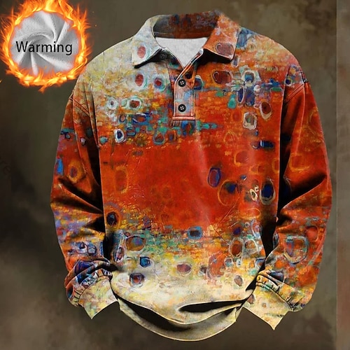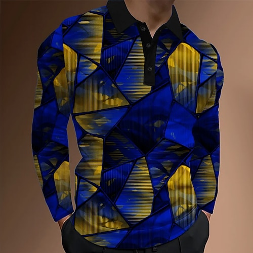 Per uomo Astratto Geometrico Polo Camicie termiche Manica Lunga Magliette polo Bavero Casual Athleisure Ferie Abbigliamento quotidiano Stampa 3D Autunno Inverno Blu Giallo Rosso