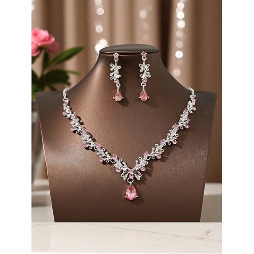 set di gioielli da donna in cristallo rosso, elegante set di collana e orecchini con strass e dettagli in oro, perfetto per feste e matrimoni eventi serali