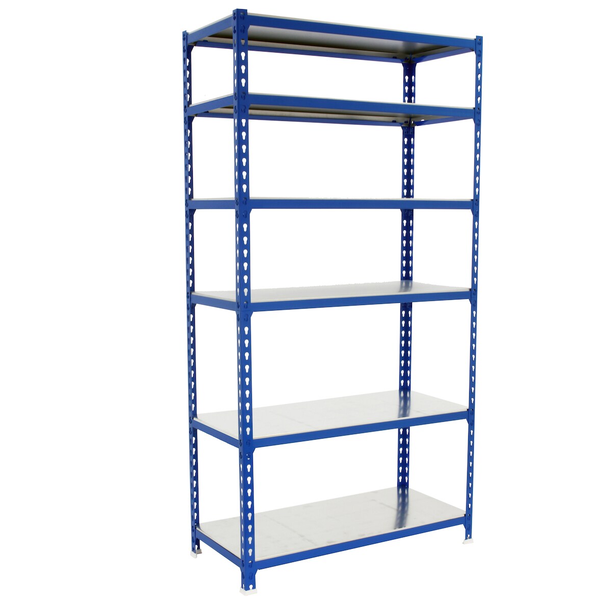 SimonRack Metall-Steckregal Simonclick plus Simonclick 6 Fachböden mit 200 kg pro Ebene in BLAU/VERZINKT 2500x1200x500 mm (Höhe x Länge x Breite)